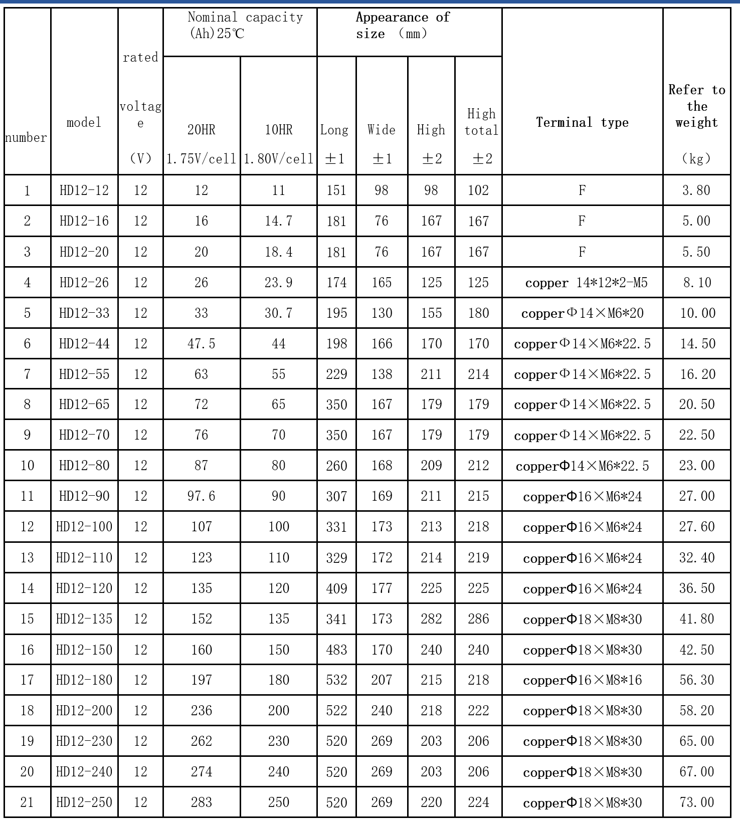 Hertz HD12V series sealed lead-acid maintenance-free batteries